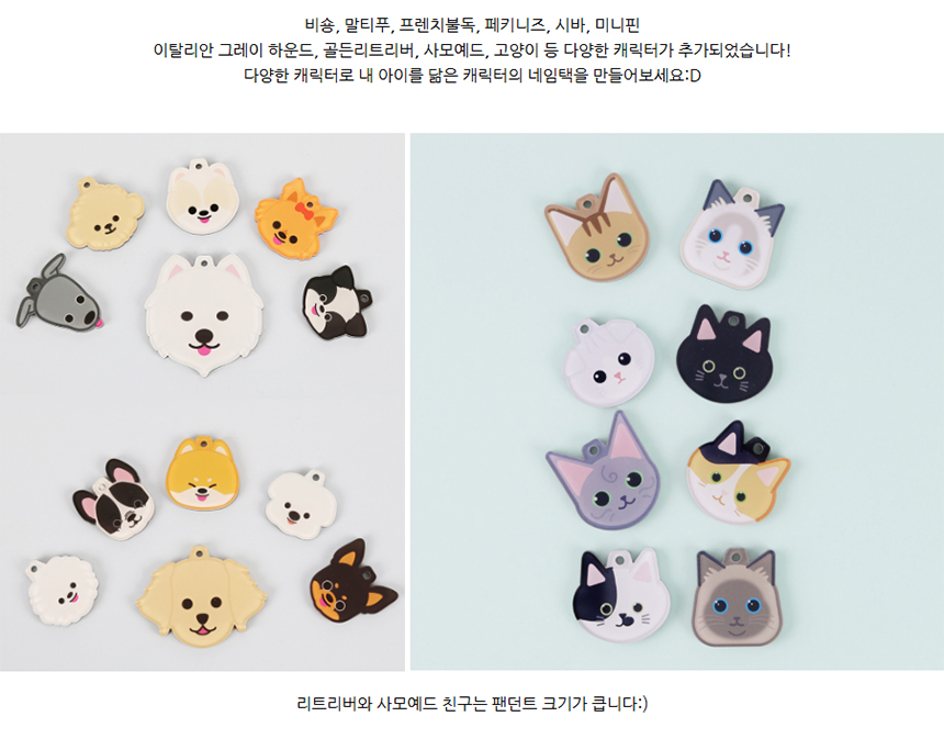 강아지 고양이 댕댕이 냥이 이름표 네임택 인식표 정보 산책 외출 유기견 보호 방지 아크릴 캐릭터 팬던트 키링 목걸이 참