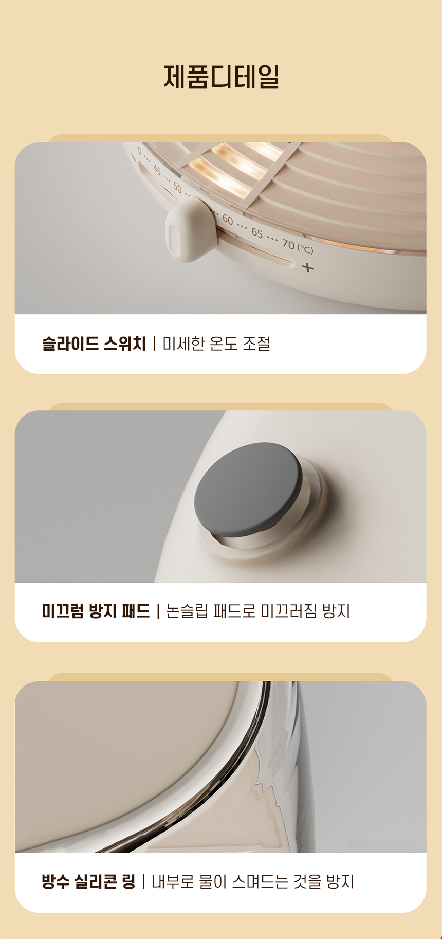 슬라이드 스위치로 온도를 세밀하게 조절할 수 있어 음료 온도를 원하는 대로 유지 및