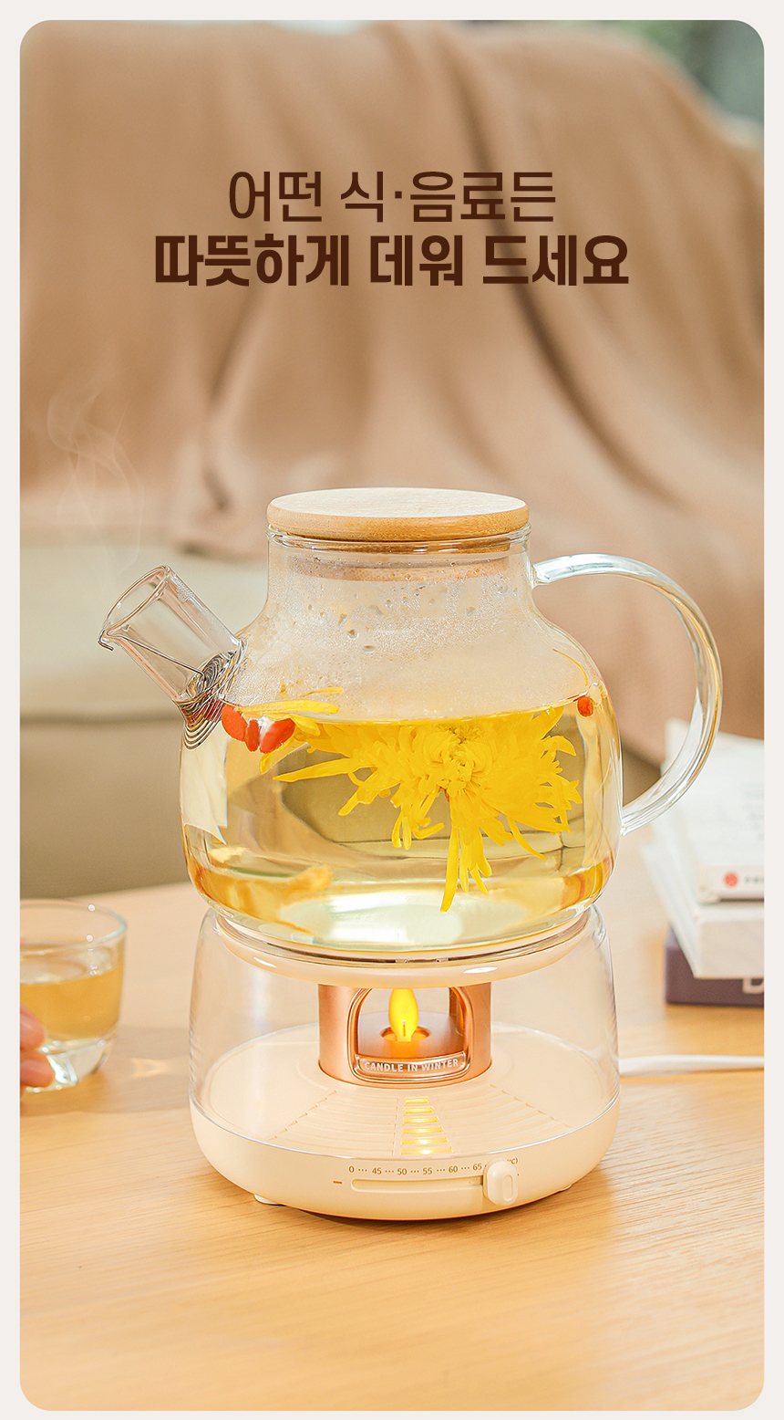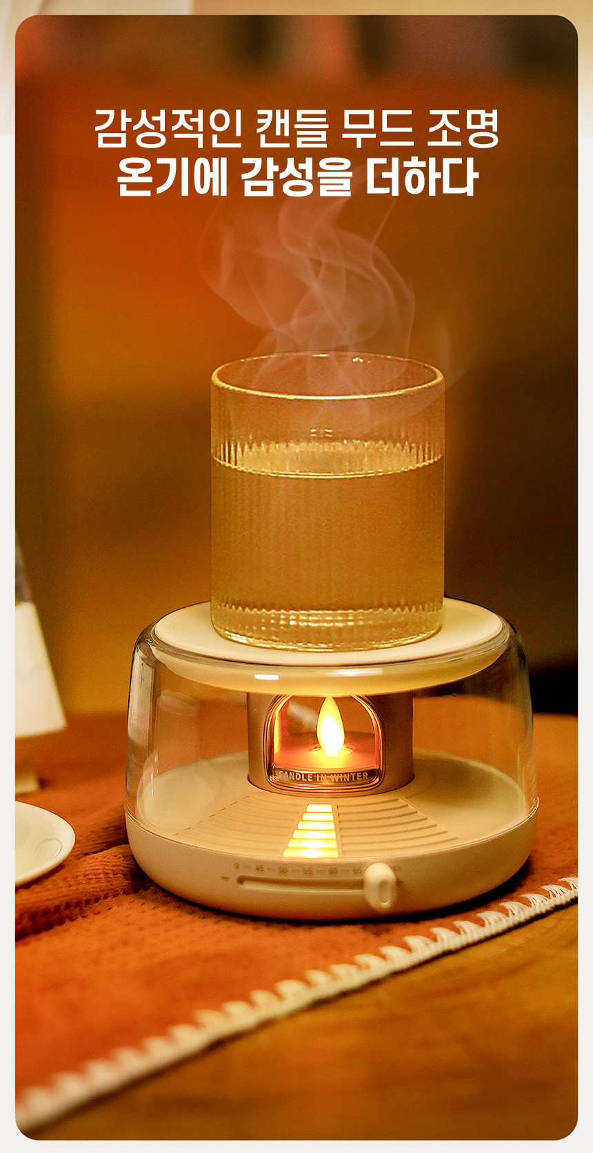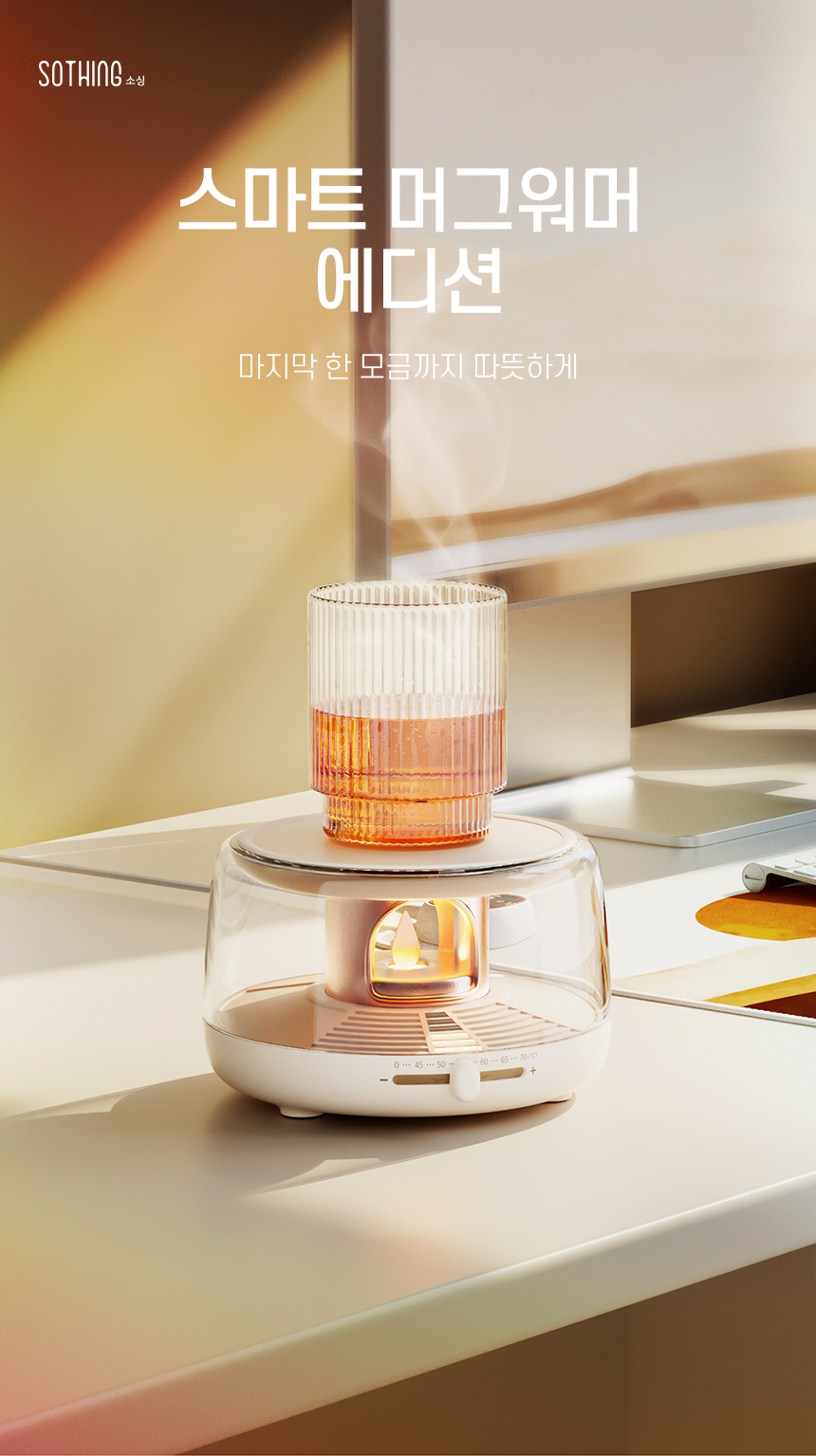 감성적인 캔들 무드 디자인의 스마트 머그 워머.