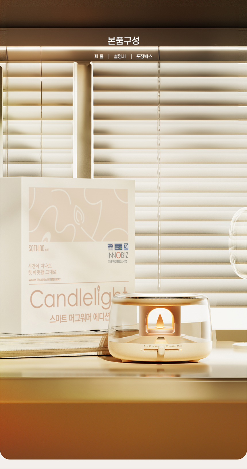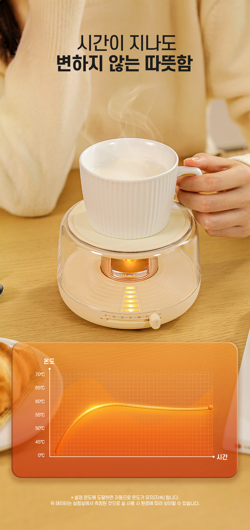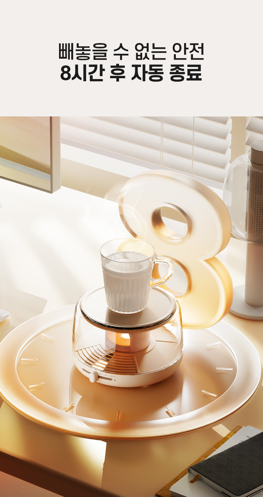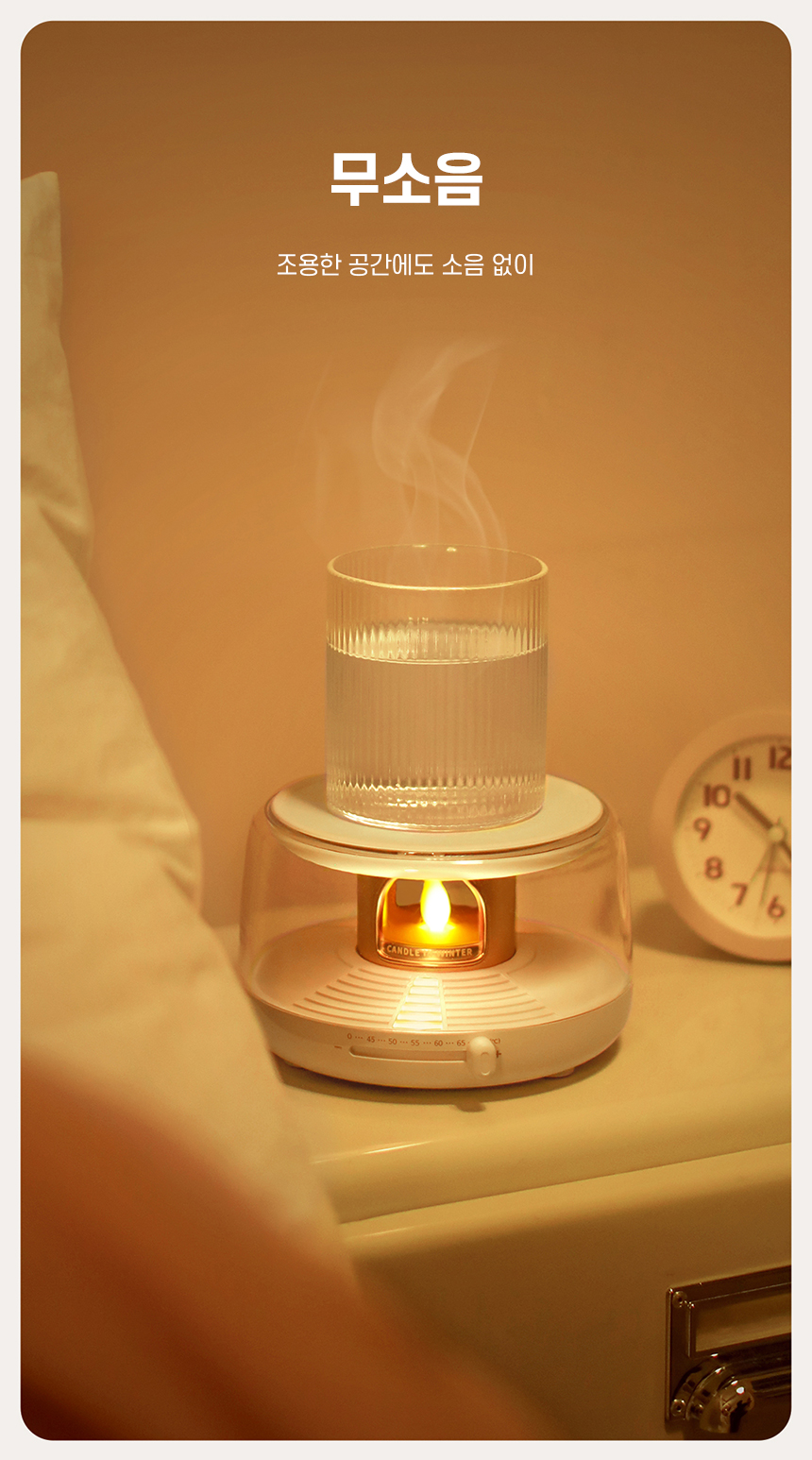 감성적인 캔들 무드 디자인의 스마트 머그 워머.