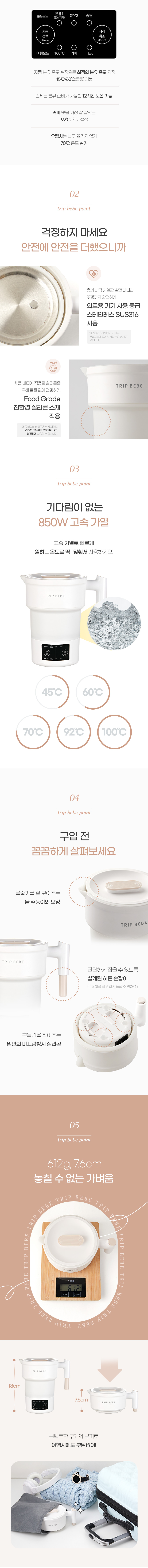 외출·여행 시 분유 타기 편한 펜소닉 트립베베 접이식 멀티 분유포트! 온도 설정이 가능해 분유·차·물 데우기까지 간편하며, 접이식 실리콘 바디로 부피를 줄여 휴대성과 보관성이 뛰어납니다. 육아, 캠핑, 출장 등 다양한 상황에서 활용 가능한 필수 멀티 포트입니다.