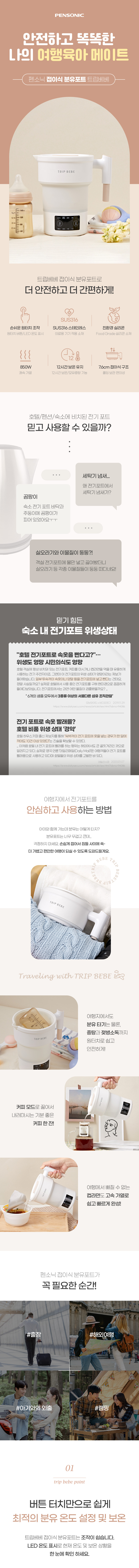 펜소닉 접이식 멀티 분유포트 트립베베 휴대용 온도조절 여행용 포트