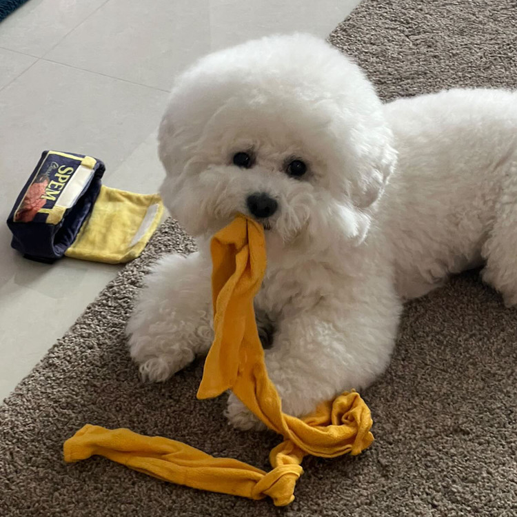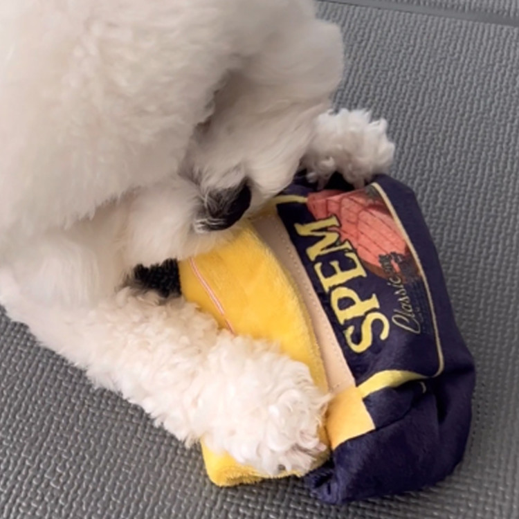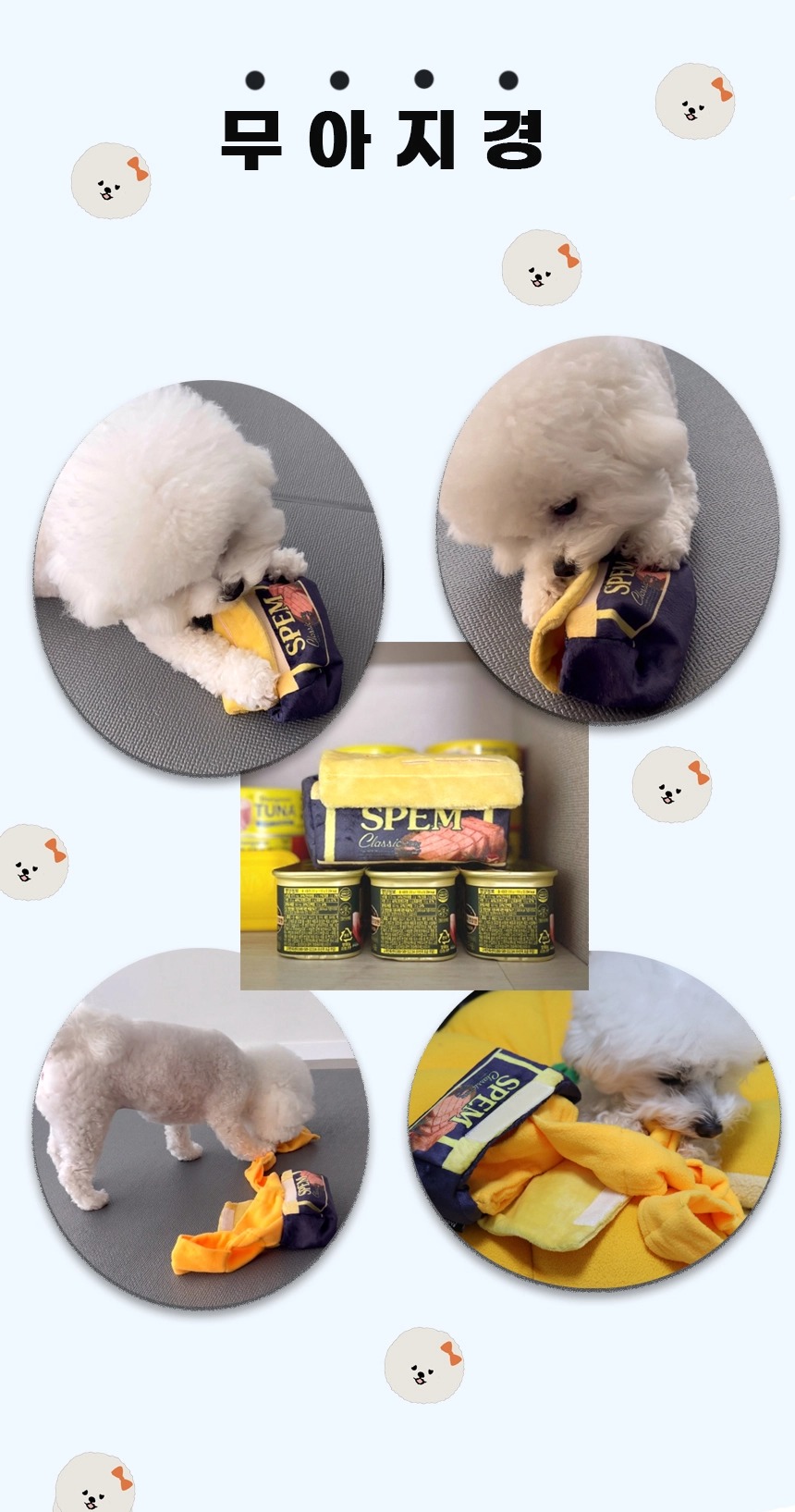 바스락거리는 스팸통과 간식을 숨길수 있는 스트랩으로 댕댕이들 흥이 폭발