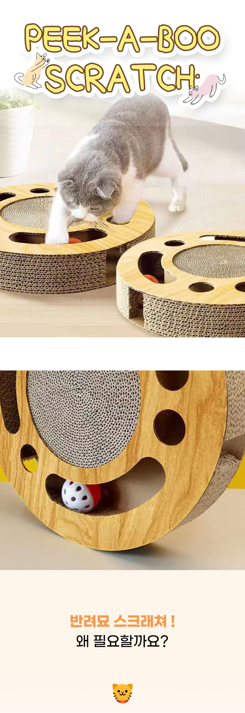 피카부 고양이 스크래쳐 장난감 골판지 스트레스 해소