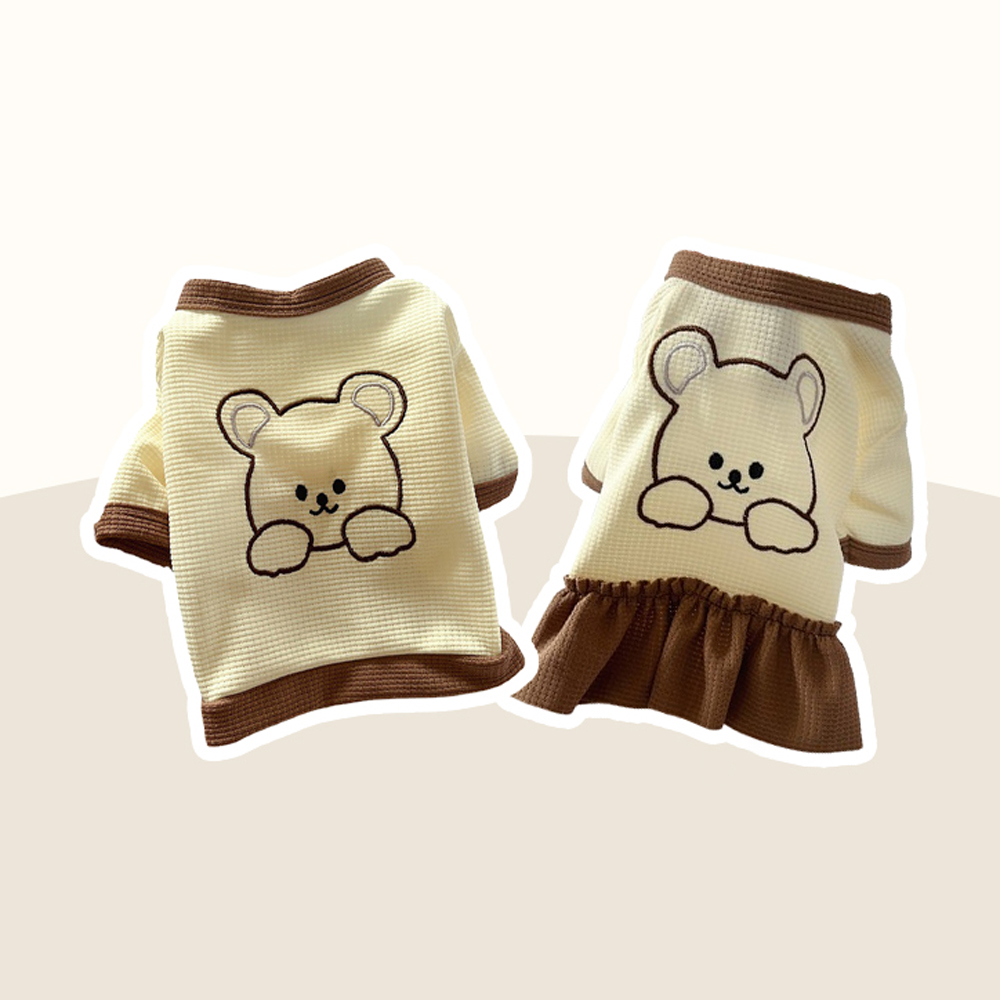 귀여운 곰돌이 자수 포인트로 산책, 외출 시 사랑스러운 스타일을 완성해주는 반려동물 티셔츠 & 원피스!